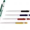 Bolígrafo de plástico translúcido y mecanismo de click. Moldeable al escribir.